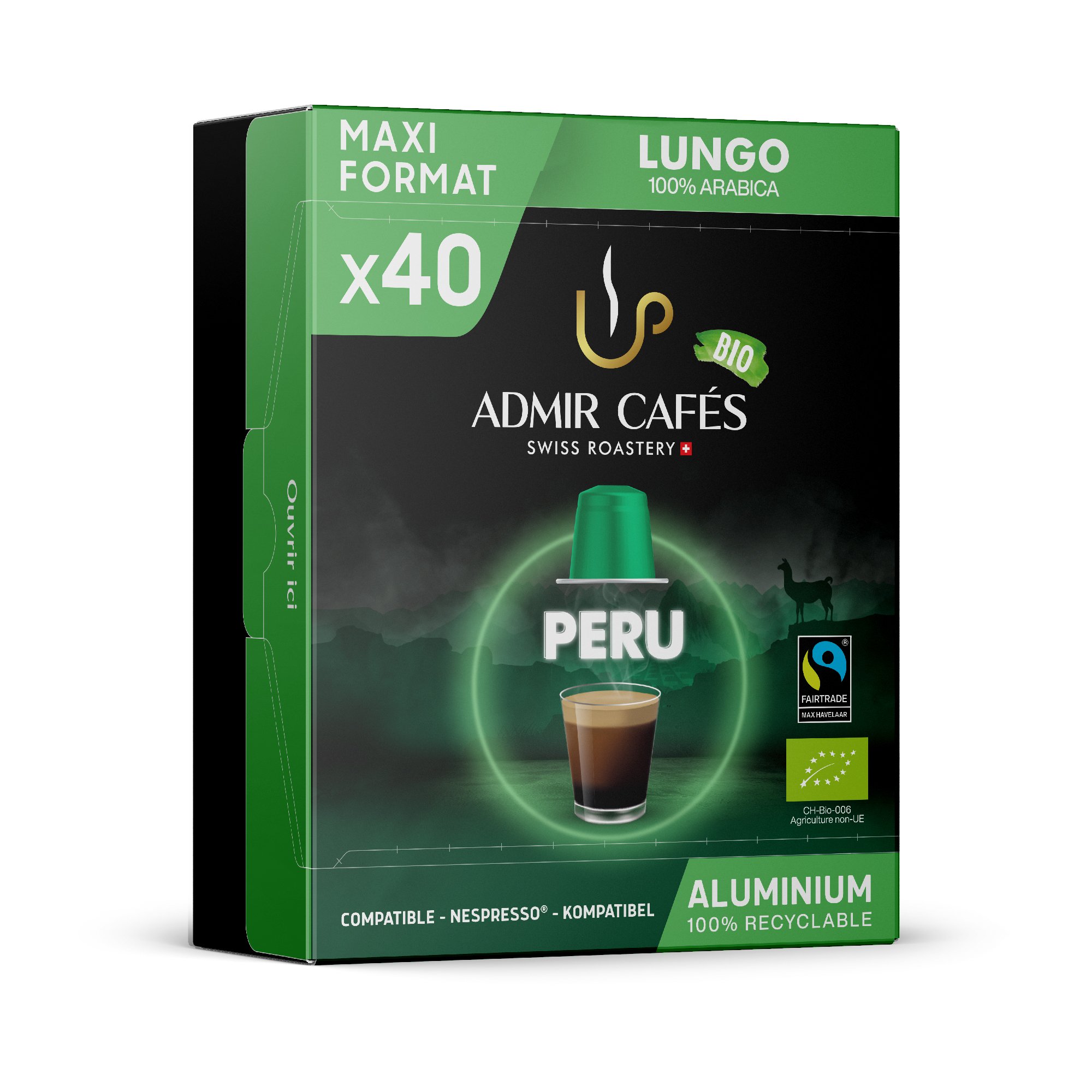 Admir Lungo Peru Bio, boîte de 40 capsules classique